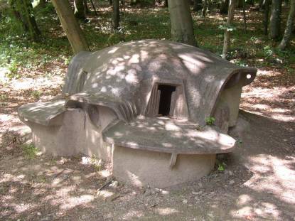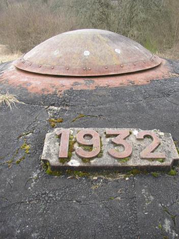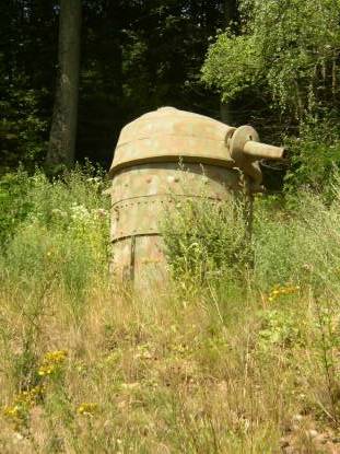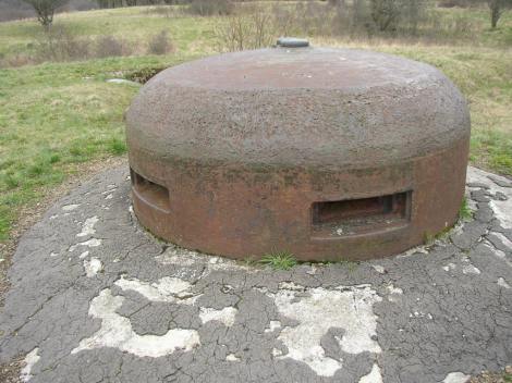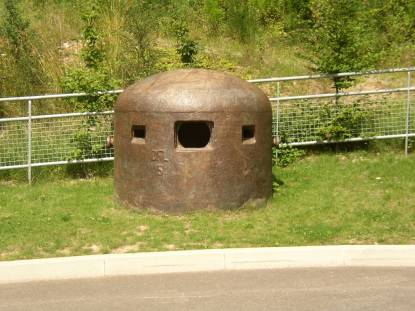 Panzerbauteil für zwei MG's, vermutlich noch aus den Befestigungsanlagen des ersten Weltkrieges | Eine Panzerkuppel mit MG-Scharte und zwei Beobachtungsschlitzen | |||||||