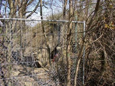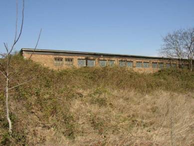| Die Fahrzeughalle ist noch relativ gut erhalten | Lediglich das dichte Buschwerk verhindert eine gute Geammtansicht | |||||||