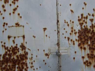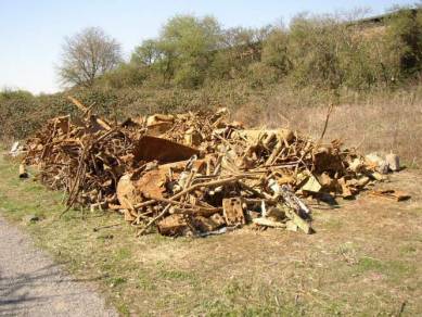 | Nahaufnahme eines Metalltors | Vor der Fahrzeughalle liegt dieser Schrott herum, er wird wahrscheinlich jedoch nichts mit dem ehemaligen Flugplatz zu tun haben | |||||||