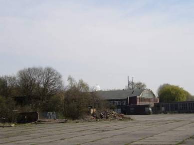| Der erhalten gebliebene Hangar | Nochmals der Hangar von einem anderen Standpunkt aus gesehen | |||||||