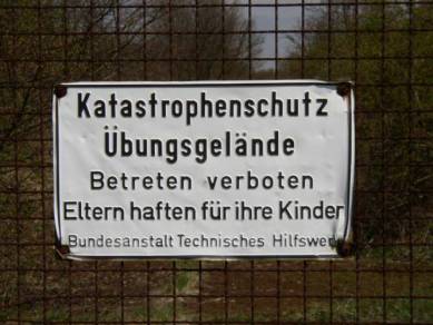 | Das eigentliche Gelände des Fliegerhorstes ist aus dem auf dem Schild genannten Grund nicht zugänglich | In dem Übungsgelände findet man diese Ruine, die eventuell sogar noch ein Rest des Fliegerhorstes sein könnte | |||||||